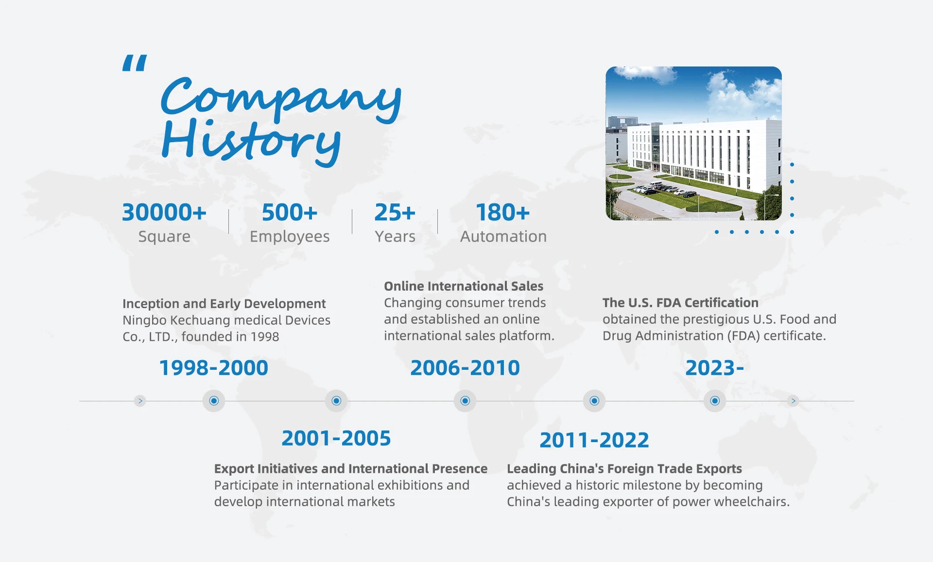 Ningbo Kechuang medical Devices Co., LTD., founded in 1998, is a high-tech industry who focus on the wheelchair product research, development, production and sales .